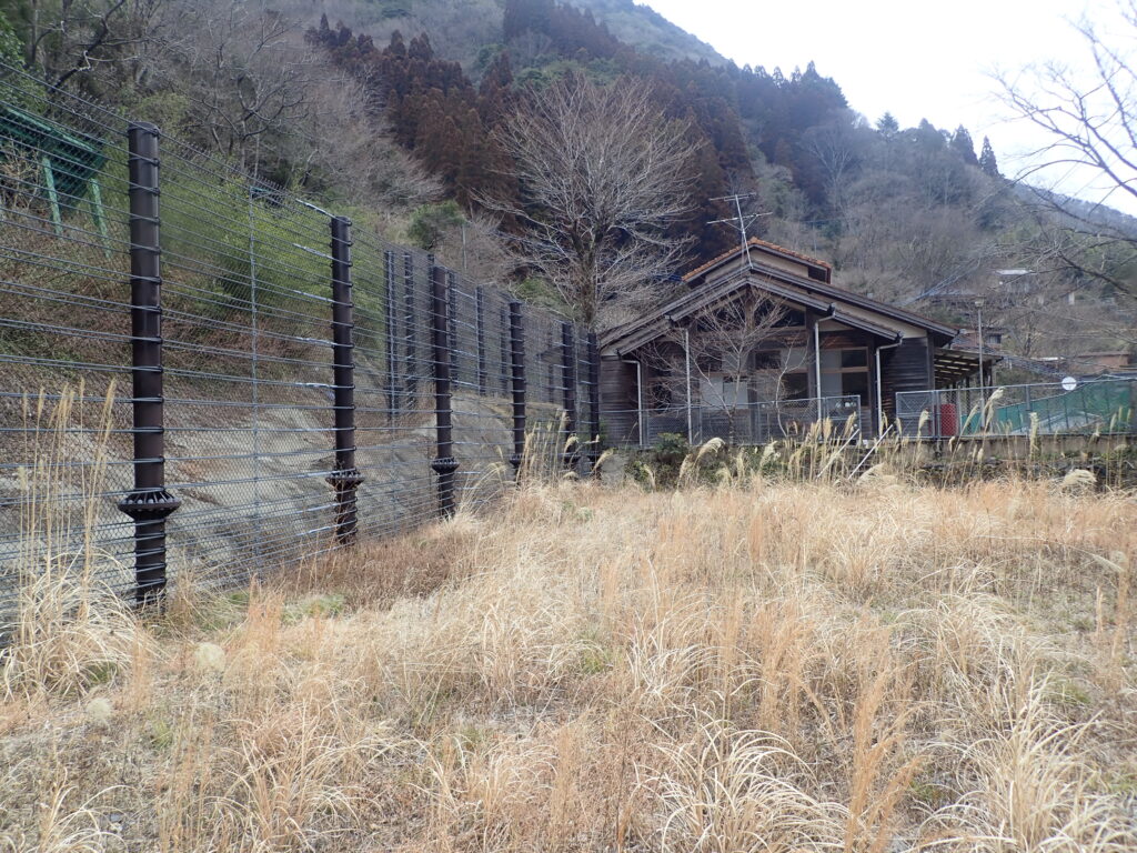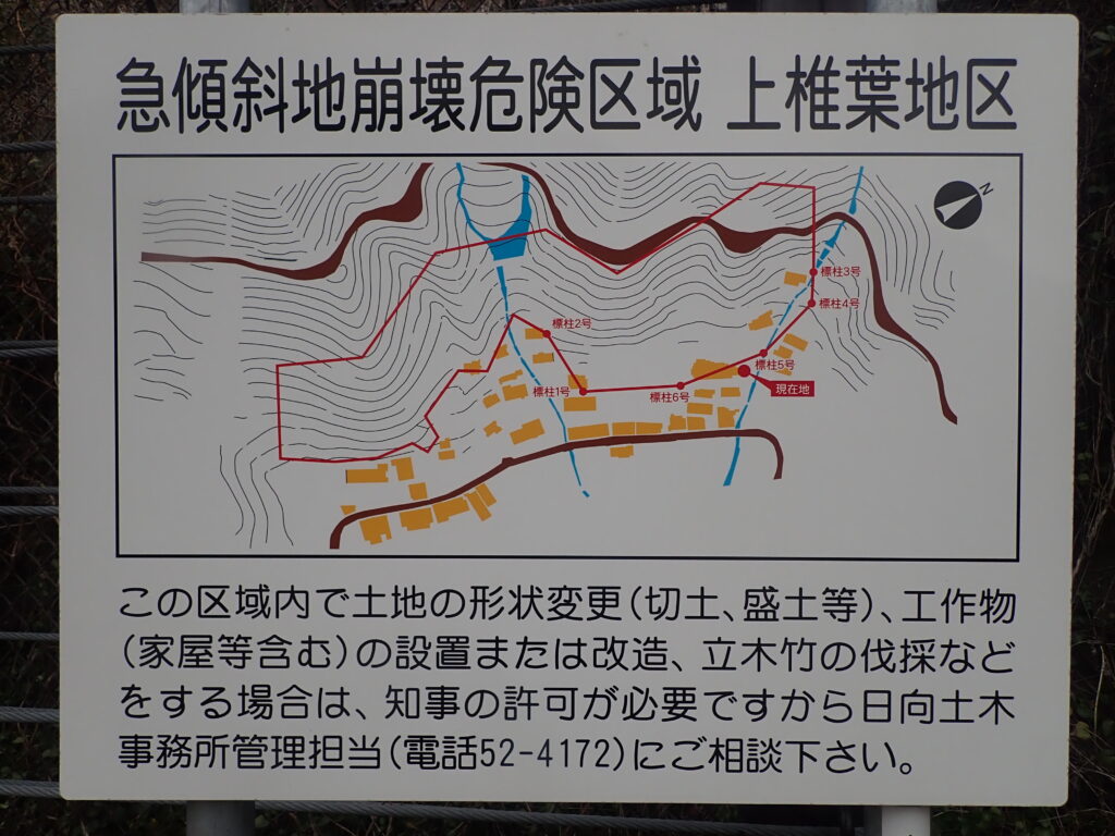 上椎葉地区では30~40℃の急傾斜の山裾に民家が建っており、土砂災害を防ぐため、昭和57年~60年度にかけて急傾斜地崩壊防止対策事業によってλ型落石防止施設が整備されました。